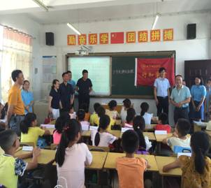 上午十点,黄波一行来到孙岗高级职业中学“行知学堂”,正值红歌教学课堂时间,孩子们在教室跟随"小先生"合唱《中国少年先锋队队歌》。见到老师们的到来小学员们鼓掌欢迎。黄波一行对"小先生"的教学表示赞赏,并向小学员们赠送学习用品,勉励他们好好学习,健康快乐的成长,并欢迎他们长大后报考2138cn太阳集团古天乐。