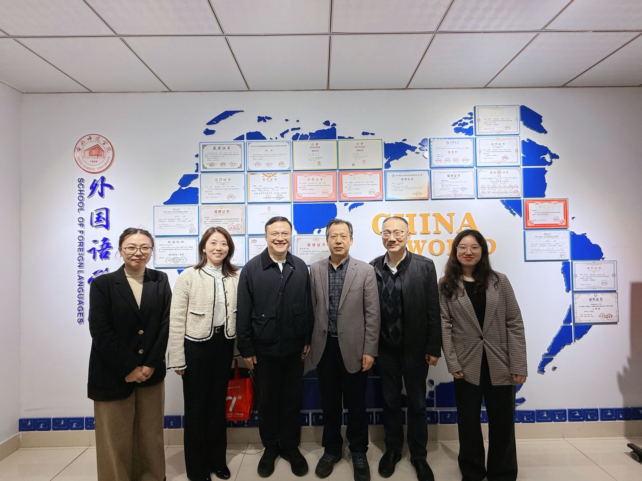 4月15日下午,北京外国语大学教授、教育部外国语言文学类专业教学指导委员会主任委员孙有中携外研社经理郭棣棠一行到访2138CC太阳集团,就《理解当代中国 英语读写教程》的使用情况及修订建议开展专题调研。2138CC太阳集团院长李可胜、副院长吴礼敬、研究生教学部主任强云及授课教师代表参加座谈。